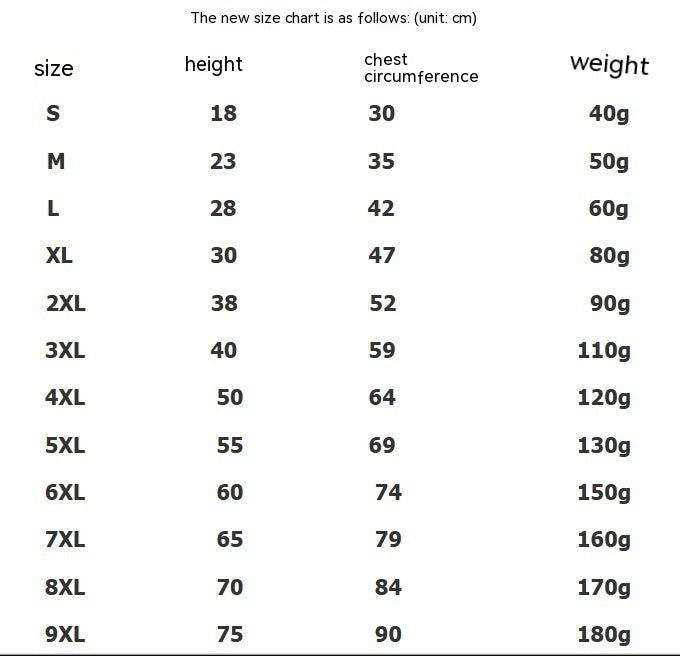 Size: XS, S, M, L, XL, 2XL, 3XL, 4XL, 5XL, 6XL, 7XL, 8XL, 9XL